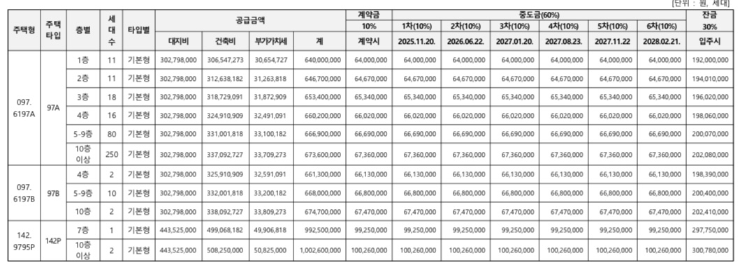 | 142㎡ | 민영분양 | 3세대 | 약 9.9억~10억 |